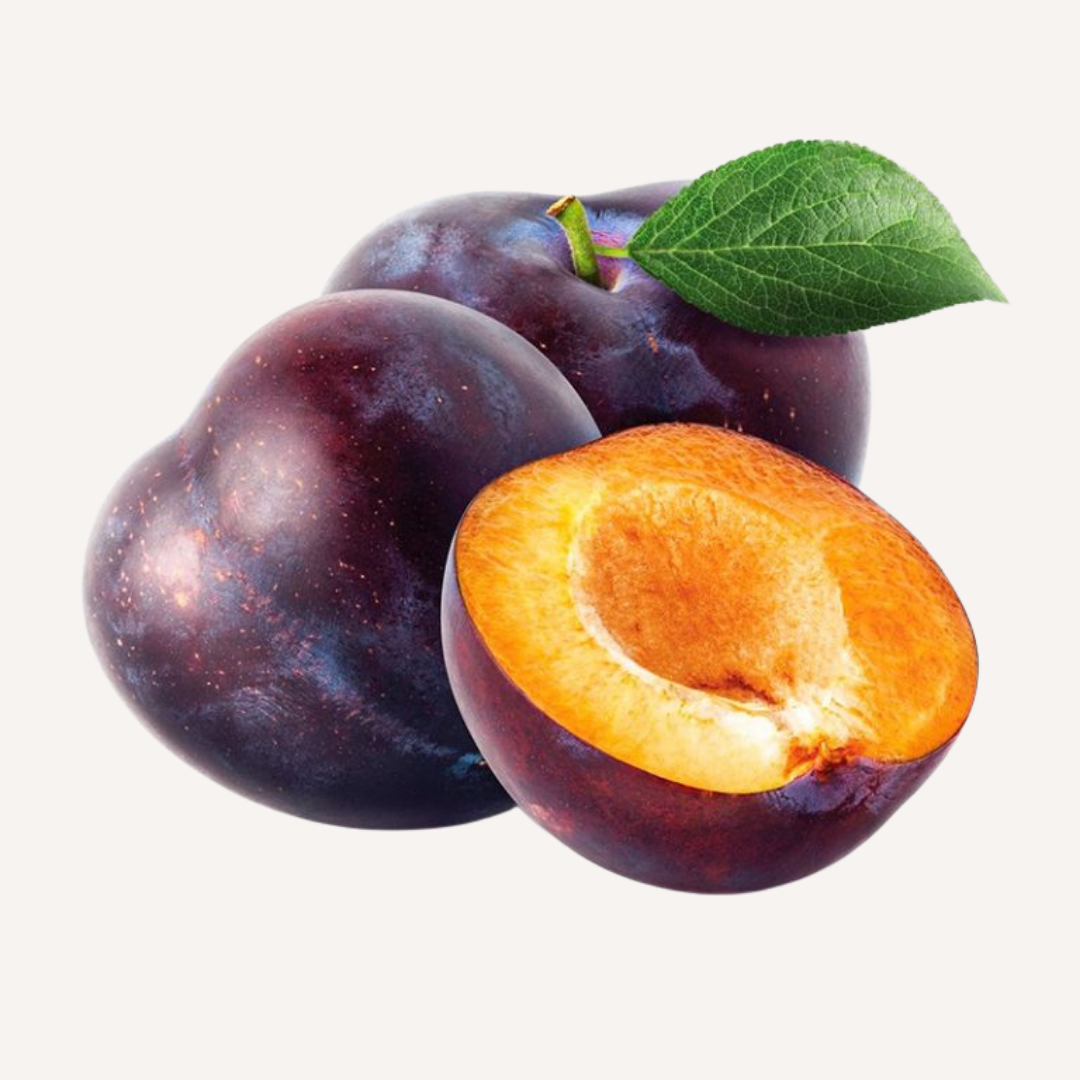 Among plum varieties, Angelica is considered one of the larger types. It has a round shape that is slightly flattened on the top and bottom, with a distinct central groove, pointed blossom end, and an asymmetrical form. The skin is purple with speckles. The flesh is yellow, firm, and separates easily from the pit. It can be stored in cold storage facilities until February or March. When harvested later, its flavor quality increases. On average, the fruit is 50 mm wide, 40 mm long, and weighs approximately 75 grams.